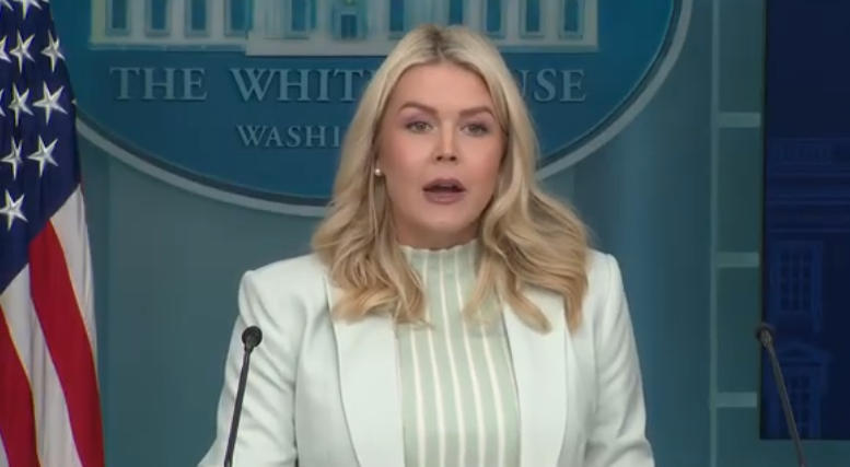 25日,白宫新闻秘书莱维特举行新闻发布会。