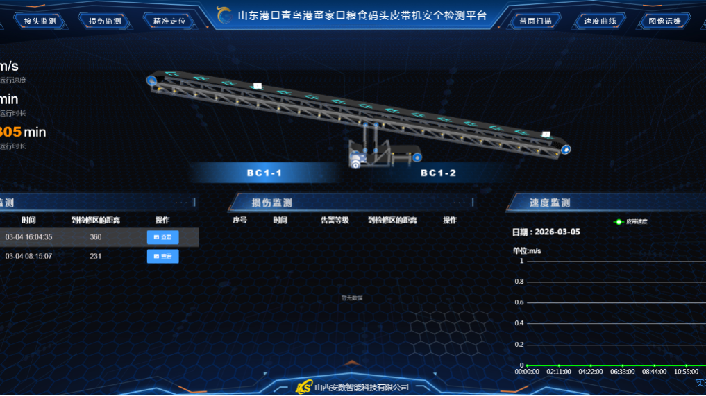 系统投用后,为粮系统带来显著成效。一方面,巡检模式彻底升级,系统可对输送带实现在线扫描并形成动态视频,自动抓拍并显示皮带接头实时位置,工作人员无需再长时间驻守驱动部位近距离检查,既大幅提升巡检效率,又有效规避人工巡检的安全风险。另一方面,故障处理效率大幅提升,精准定位和定点停机功能让检修工作告别 “盲找故障”,实现快速维修,避免小隐患演变成大故障,有效延长皮带设备使用寿命,降低维修成本。此外,系统可实现检测数据线上留存和统计分析,为设备的运行维护提供科学数据支撑,推动粮系统设备管理从“经验型”向“数据型”转变。