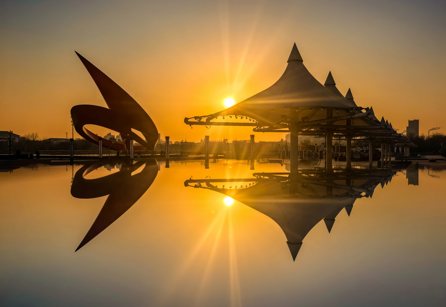 作品说明:目前,德州市政建设飞速发展,城市面貌大有改善,作者想用镜头记录这座美丽的城市,让更多的人去欣赏,就用手机加倒影镜,在冬日暖阳里拍下了一幅幅美丽的图画。