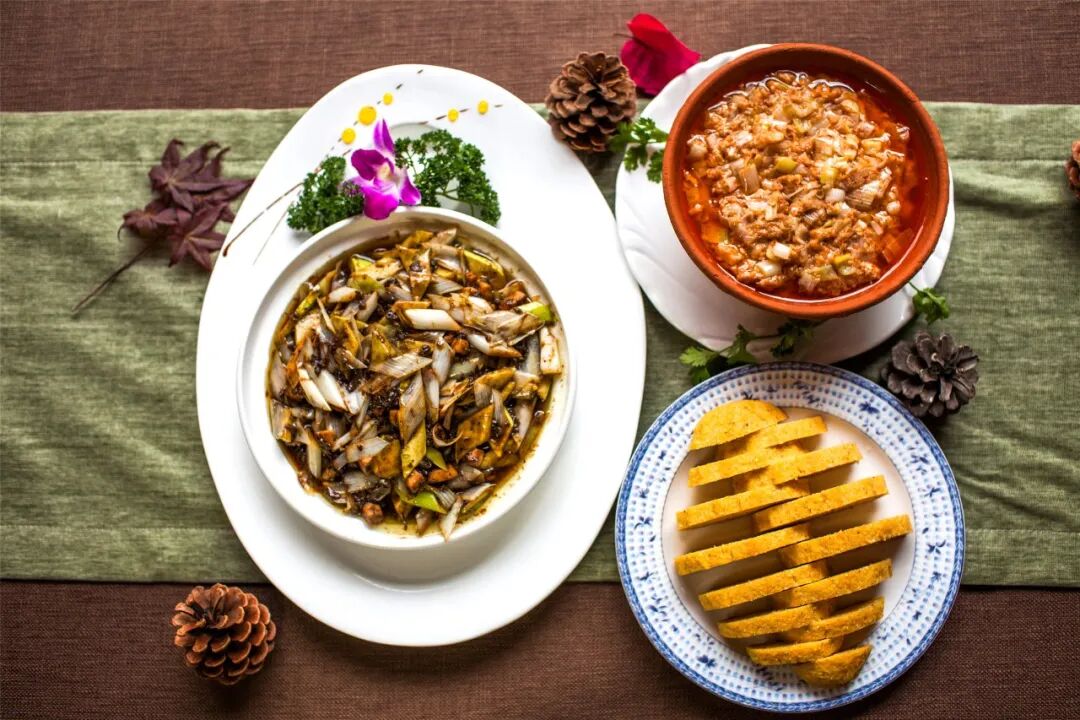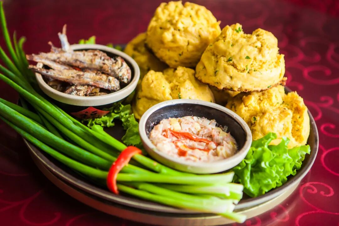 热气腾腾的玉米饼子就着咸香浓郁的虾酱,再配上水灵灵的大葱,一口下去,谷物的甜香与海味的咸鲜在舌尖碰撞,越嚼越香,令人胃口大开。