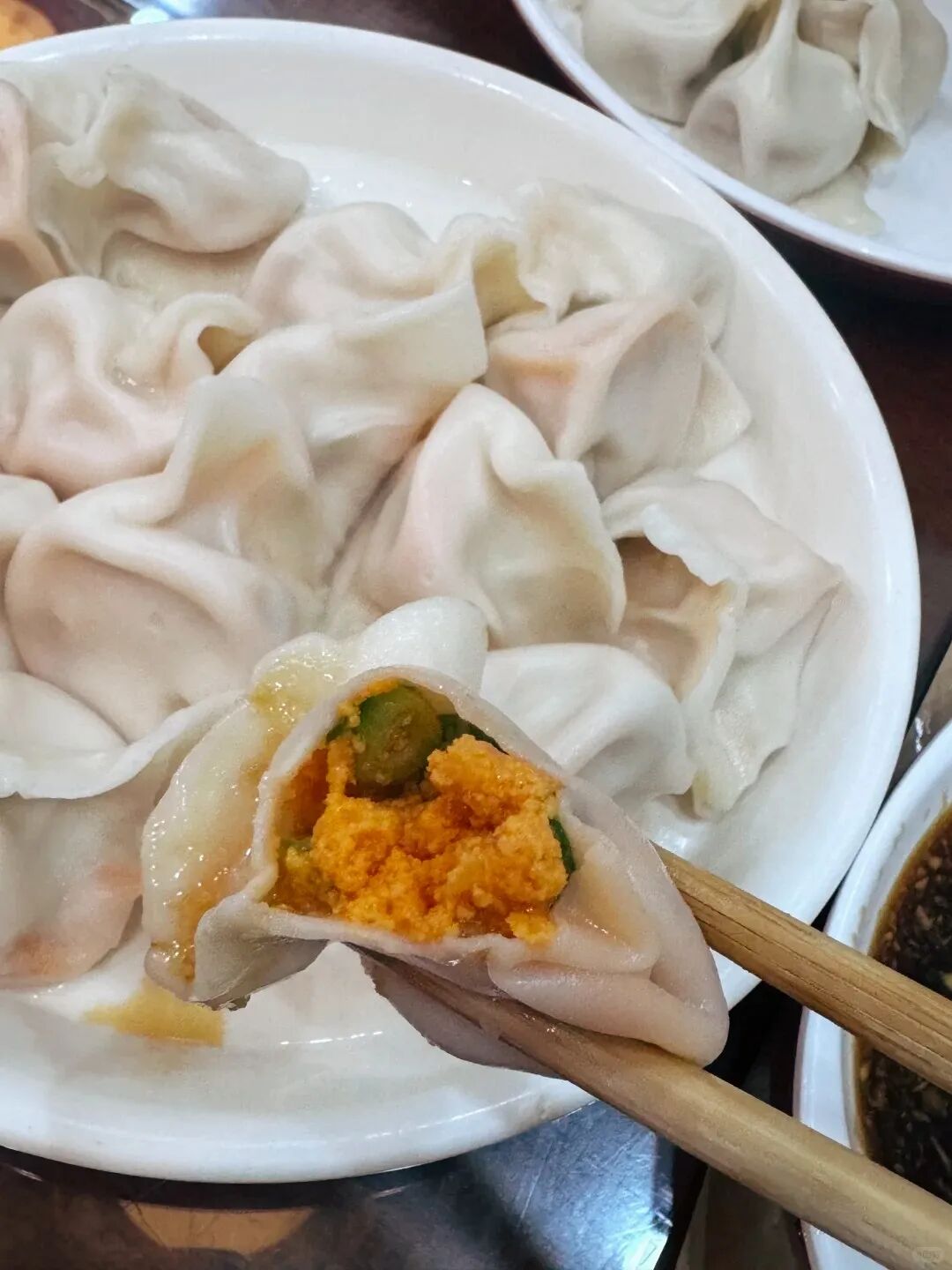 烟台地处黄渤海交汇处,海胆肉质肥美、黄满籽足,用海胆做馅的饺子,堪称海鲜饺子中的“天花板”。