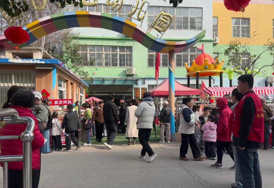 活动前,社区工作人员、网格员、巾帼志愿者及幼儿园老师们提前向居民宣传活动,布置庙会舞台及摊位,本次活动以“马”为生肖文化载体,旨在帮助幼儿在欢乐的氛围中感知生肖寓意,体验传统民俗。活动现场热闹非凡,幼儿园操场化身成一个个充满童趣的“庙会摊位”。从香气扑鼻的网红小吃,到甜甜蜜蜜的莲子粥,从趣味十足的砸金蛋、套圈、舞狮子、踩高跷,到琳琅满目的手工艺品,无不吸引着孩子们和家长们的目光。功夫熊猫人偶的惊喜互动、老师们的精彩节目表演,更为活动增添了浓厚的文化底蕴。
