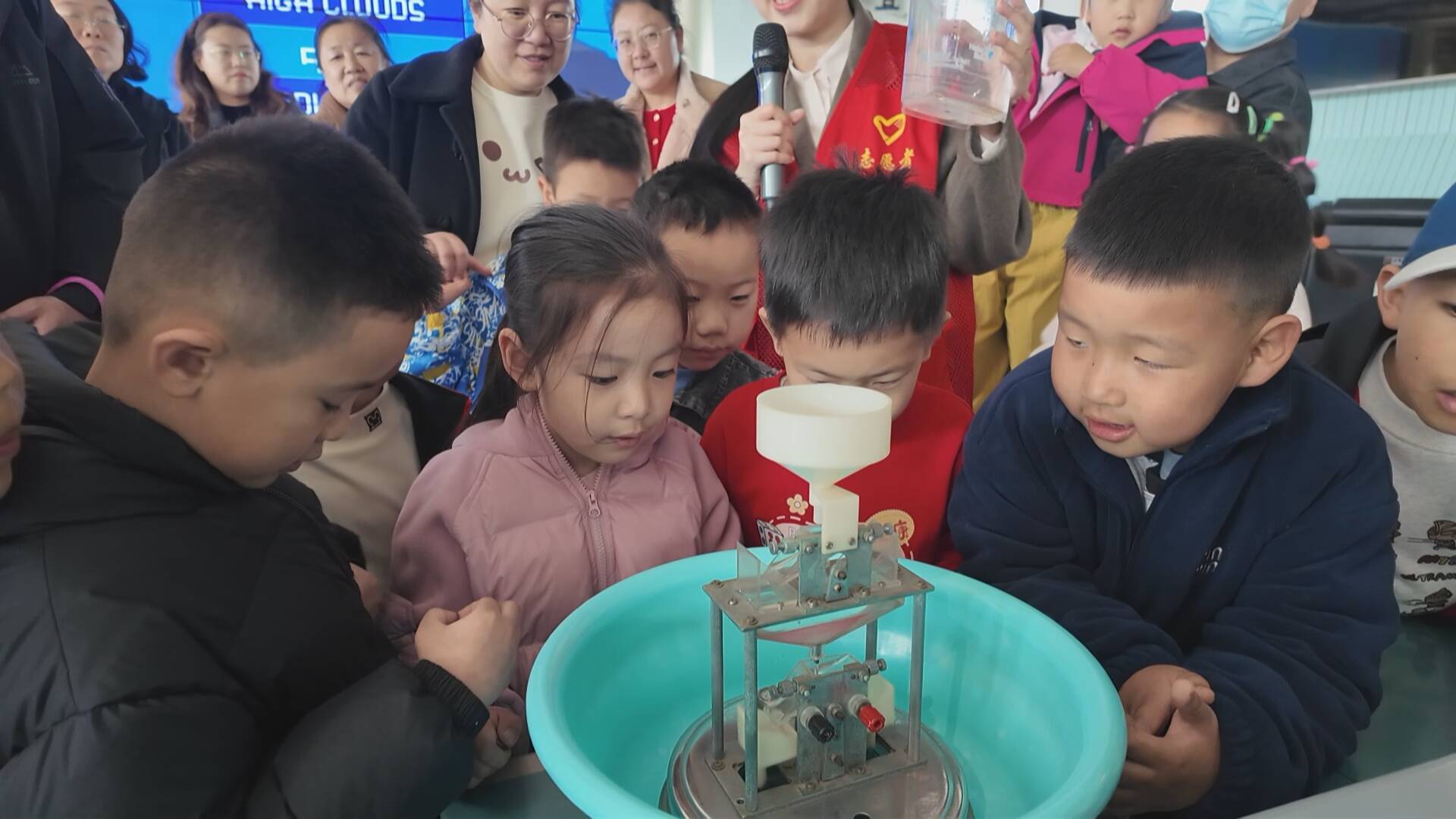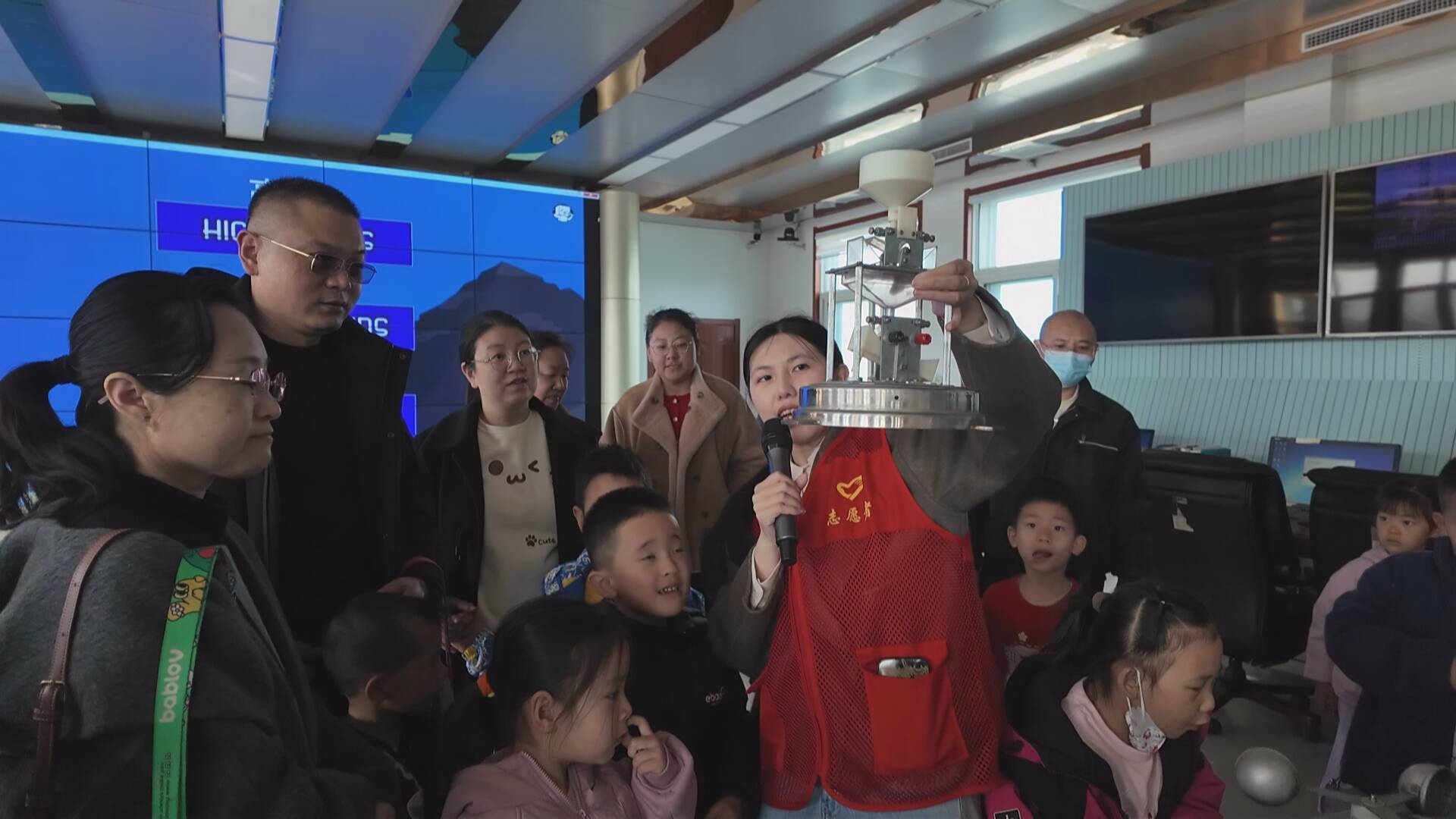 在气象台科普现场,工作人员通过生动案例,以趣味动画为载体,讲解了水循环的过程、气象卫星工作原理以及台风、雷电、暴雨等天气现象的成因,让孩子们在轻松愉悦的氛围中学习到气象知识。孩子们化身“小小气象观察员”争相提问,在与工作人员的交流互动中加深了对气象知识的理解 。