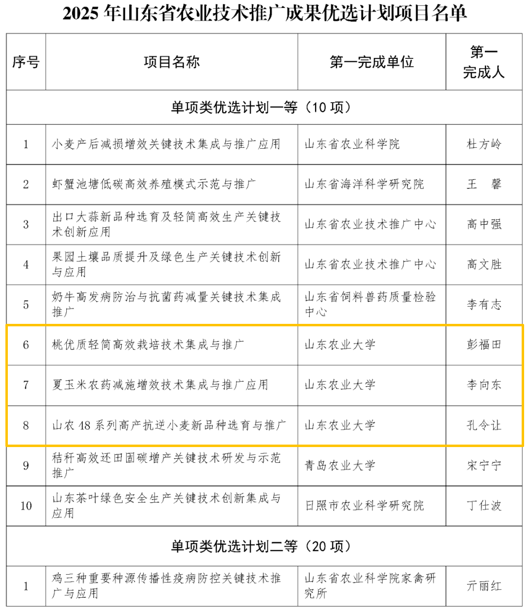 近日,2025年山东省农业技术推广成果优选计划获评项目正式公布,山东农业大学获一等奖3项、二等奖1项。