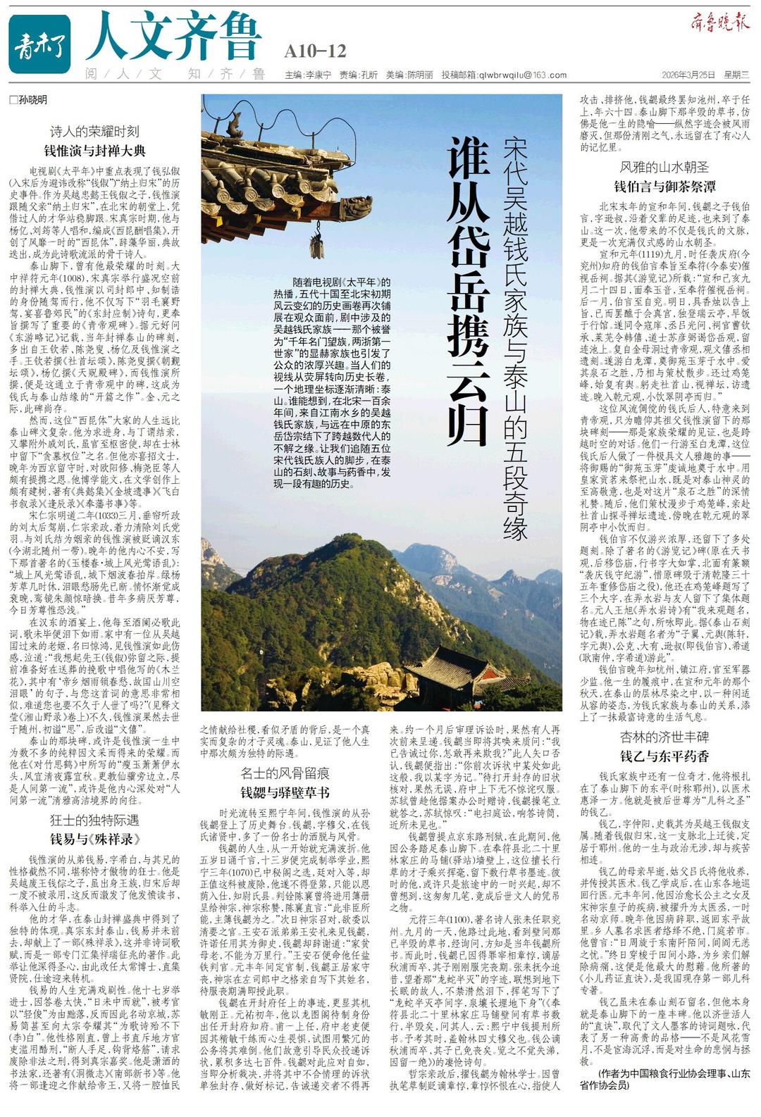 人文齐鲁|谁从岱岳携云归?宋代吴越钱氏家族与泰山的五段奇缘