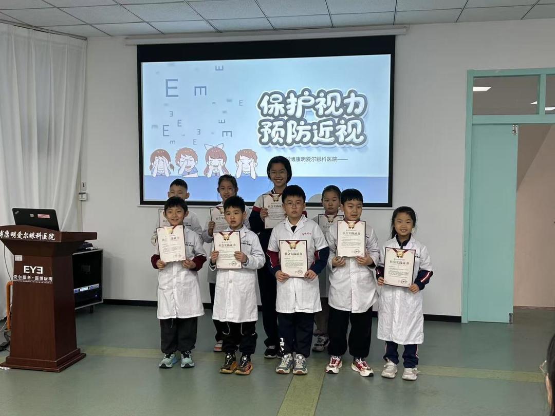 如果说讲座和筛查是“被动”的接收,那么“小小眼科医生”职业体验活动则是“主动”的探索。为了让孩子们在快乐中学习眼健康知识,淄博康明爱尔眼科医院精心组织了多次“小小眼科医生”社会实践活动。