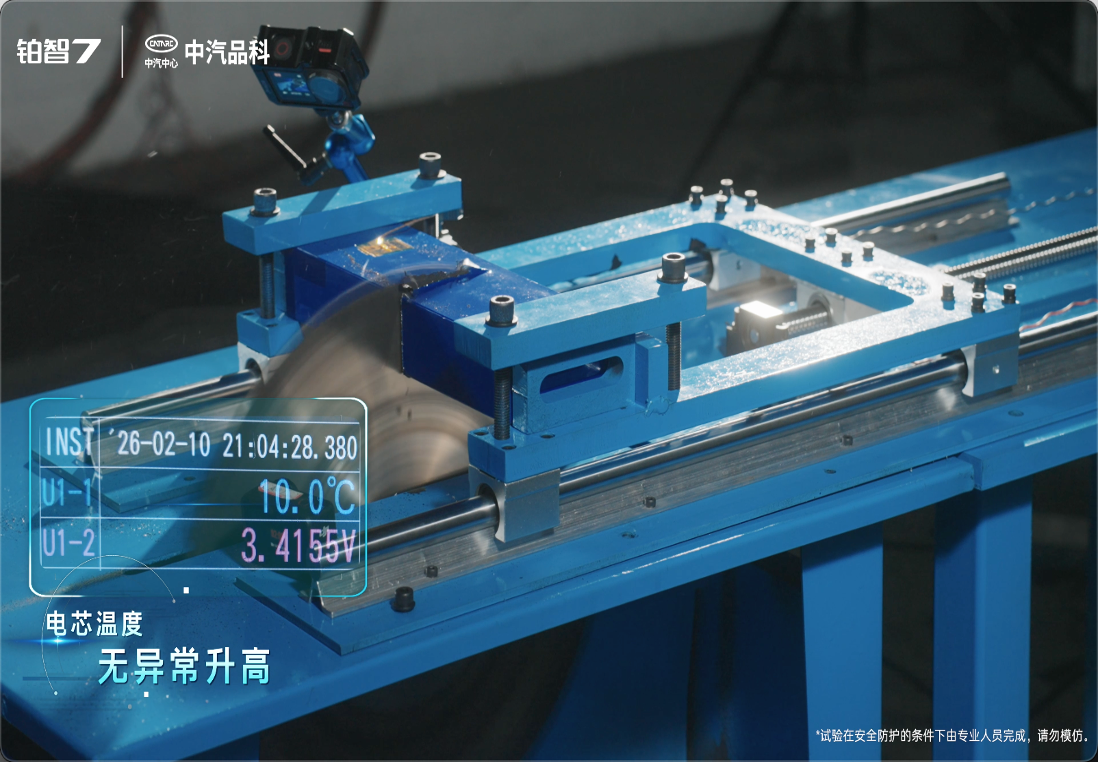 日前,中汽中心针对即将在3月29日上市的广汽丰田铂智7,开展了一系列极限安全测试。其中,“电芯切割”测试尤为引人关注:两块电量均为100%的电芯:其中一块为全新状态,另一块则经历了800余次循环充放电。在完成全截面切割后,静置24小时未出现起火现象。