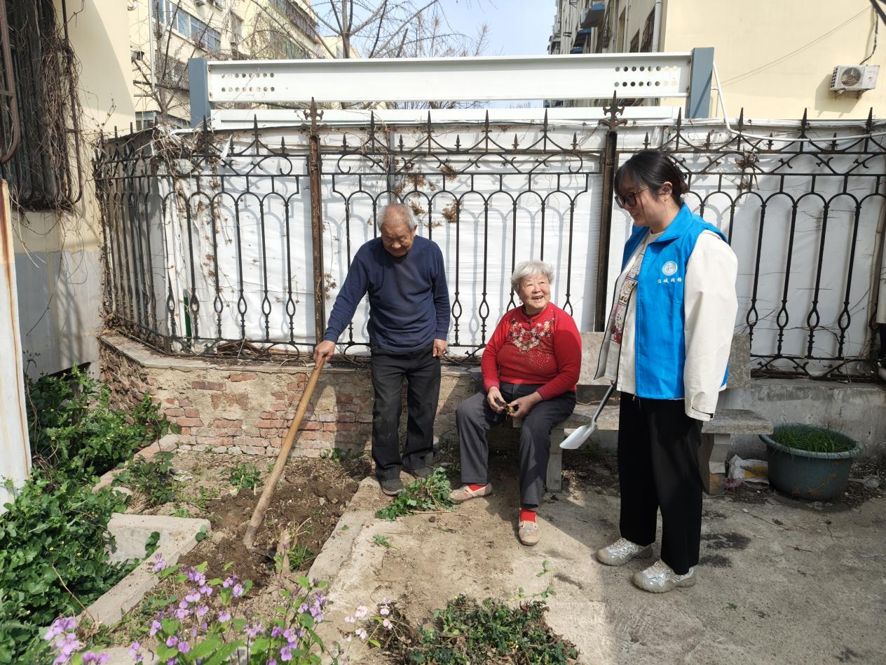 活动现场,大家分工协作,有的手持锄头翻松土壤、清理杂草,有的细心规划花卉种植区域,还有的陪坐在一旁的老人拉家常,倾听他们对社区环境的期许。原本略显杂乱的闲置空地,在大家的共同努力下逐渐变得整洁有序,为后续栽种花卉、打造“微花园”做好了准备。