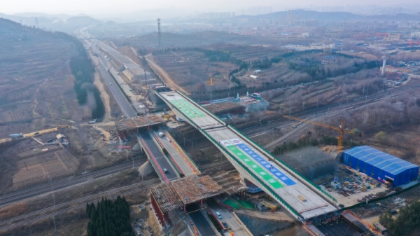 近日,由山东高速投资建设的荣乌高速烟台枢纽至蓬莱枢纽改扩建工程(以下简称“烟蓬改扩建项目”)上跨蓝烟铁路转体桥顺利完成转体,与主线实现精准对接,为项目建成通车奠定了坚实基础。