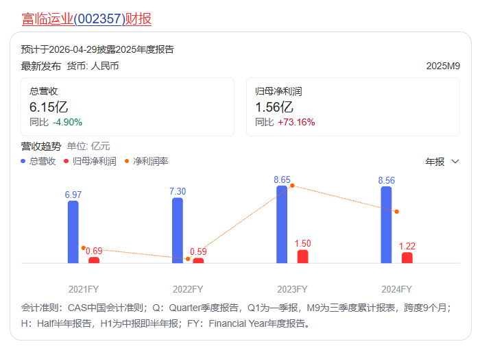 据富临运业披露,截至2025年三季度末,永锋集团持有富临运业9373.32万股股份,占公司总股本的29.90%,为公司第一大股东及控股股东,公司实际控制人为刘锋。以3月25日富临运业收盘价14.46元/股计算,上市公司最新总市值为45.33亿元,永锋集团所持对应股份的市值约为13.55亿元。