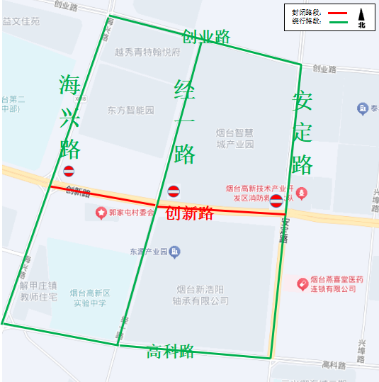 创新路(海兴路—安定路段)3月25日—5月9日进行封闭施工。