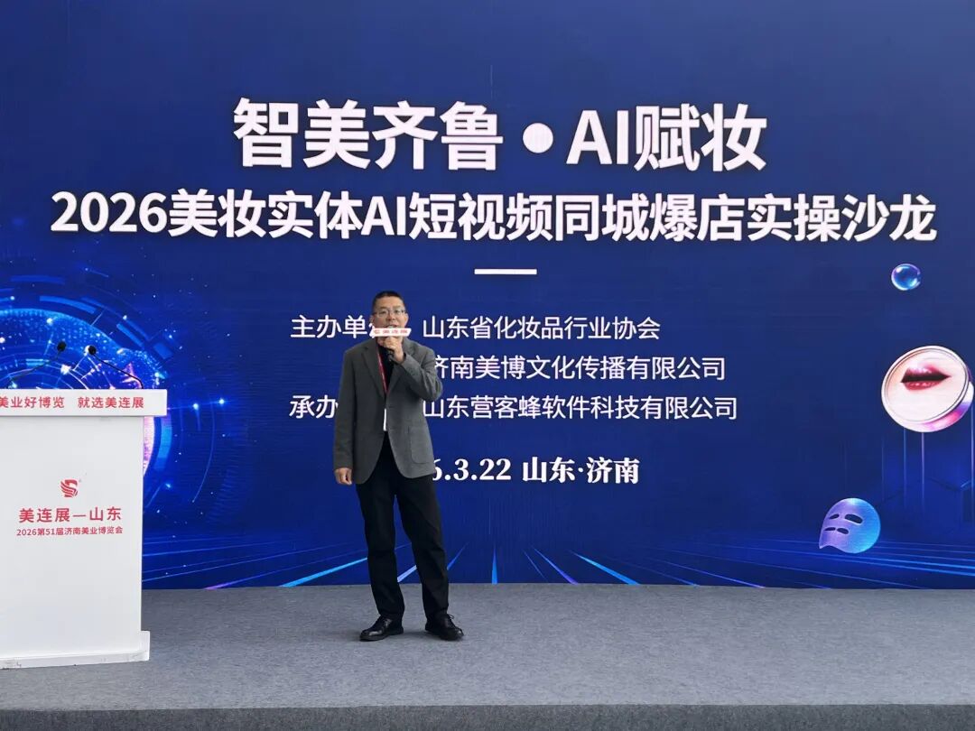 3月22日上午,由山东省化妆品行业协会与美博国际会展平台联合主办的AI赋能美妆企业成长2026新路径专题沙龙在山东国际会展中心成功举办。省内美妆行业工商企业负责人100多人齐聚一堂,共话AI与短视频赋能实体美业新路径。会议由山东省化妆品行业协会秘书长牟云帆主持。