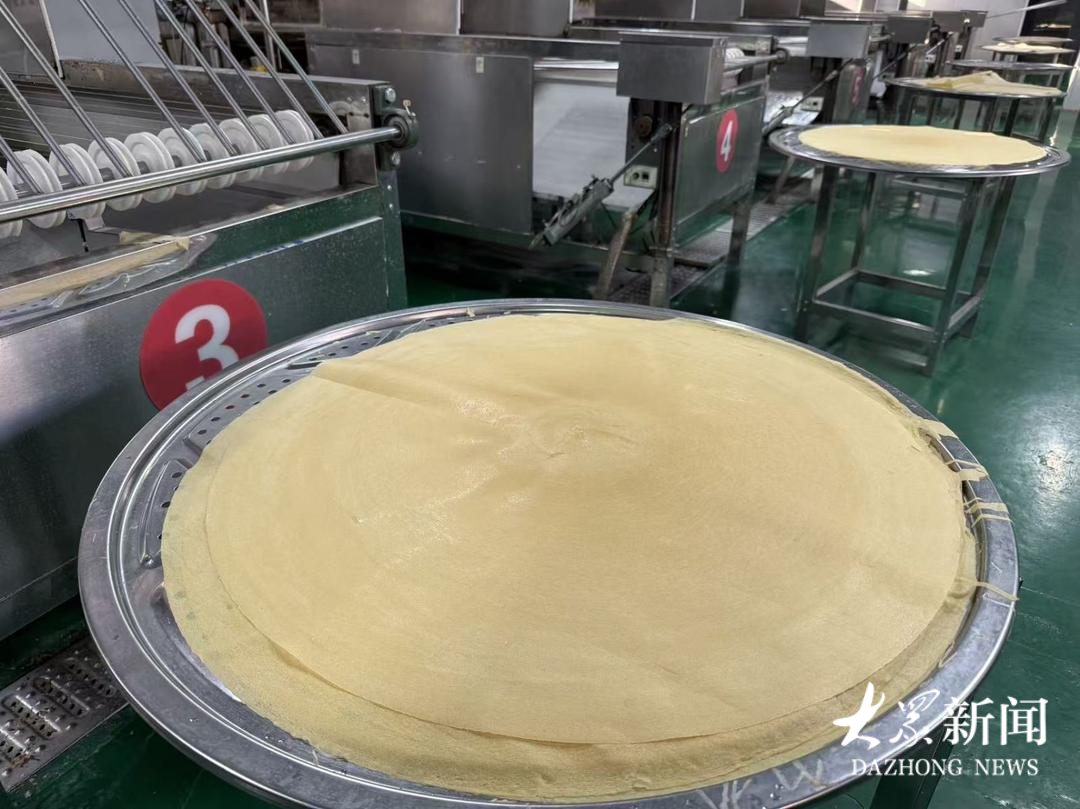 想法有了,落实是关键。2024年下半年,他先后组织团队进行了几十次试验,具体做法是先将苹果打成汁,然后历经12小时低温发酵和18小时恒温焖制,再配合玉米、大米、高粱、小米、黄豆等传统煎饼食材,摊出来的煎饼带着浓浓的苹果香,一口下去,回味无穷,独具风味的“沂源红”苹果煎饼研发成功。