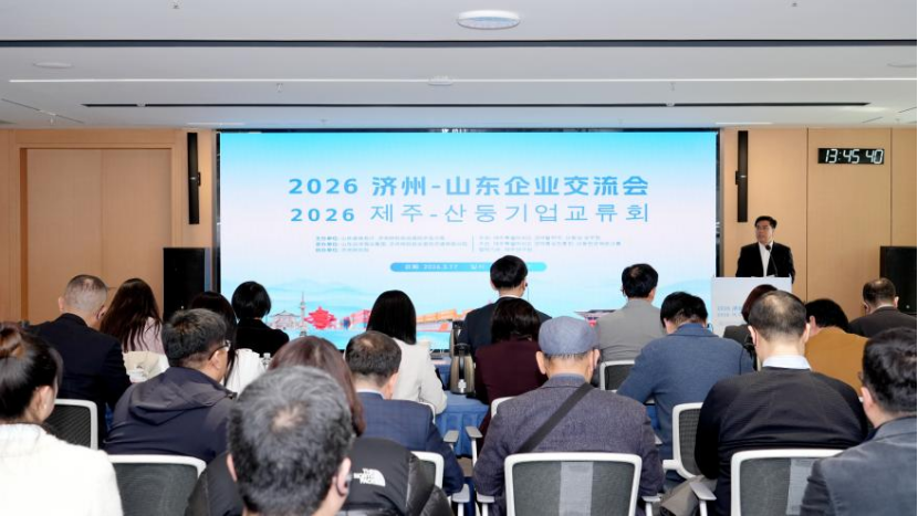 3월 17일 오후, 2026 제주-산둥 기업 교류회가 칭다오에서 개최됐다. 이번 행사는 산둥성 상무청과 한국 제주특별자치도 경제활력국이 공동으로 주최했다. 산둥성과 제주도 양측의 관련 부서, 기관, 기업 등에서 온 약 100명의 대표가 한자리에 모여 양 지역 간 경제무역 협력 심화 등에 관한 의견을 교환했다.