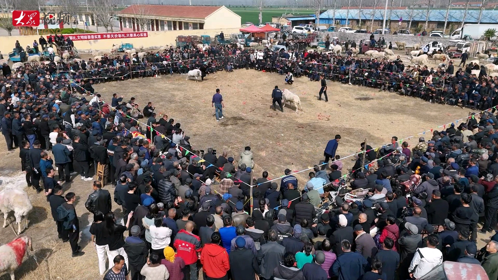 另一边,极具地方特色的斗羊比赛火热开赛,成为现场最具人气的民俗活动。一只只体格健硕、精气神十足的斗羊在主人的牵引下依次登场,摆势、蓄力、迅猛冲撞,犄角相撞的铿锵声响此起彼伏,激烈又精彩的角逐引得围观群众阵阵喝彩,掌声、欢呼声、呐喊声连绵不断。这项传承已久的乡村民俗活动,不仅丰富了群众的精神文化生活,更唤醒了大家的乡土记忆,凝聚起乡村文化认同感。