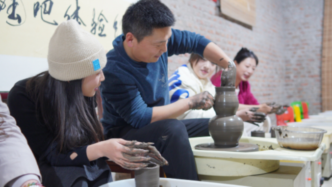 体验制作日照黑陶 图源:新华网
