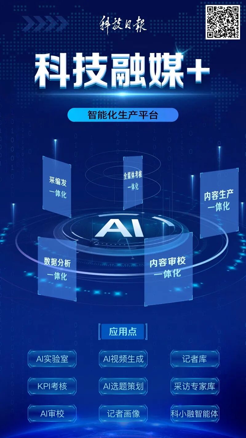人工智能正深度融入经济社会的各个领域,重塑产业生态、商业模式和社会治理方式。科技日报以“科技融媒+”智能化生产服务平台项目建设为抓手,将人工智能等先进技术应用在新闻生产和管理中,打通报社生产、传播、评价等业务系统,大大提高了报社生产和管理的智能化水平。