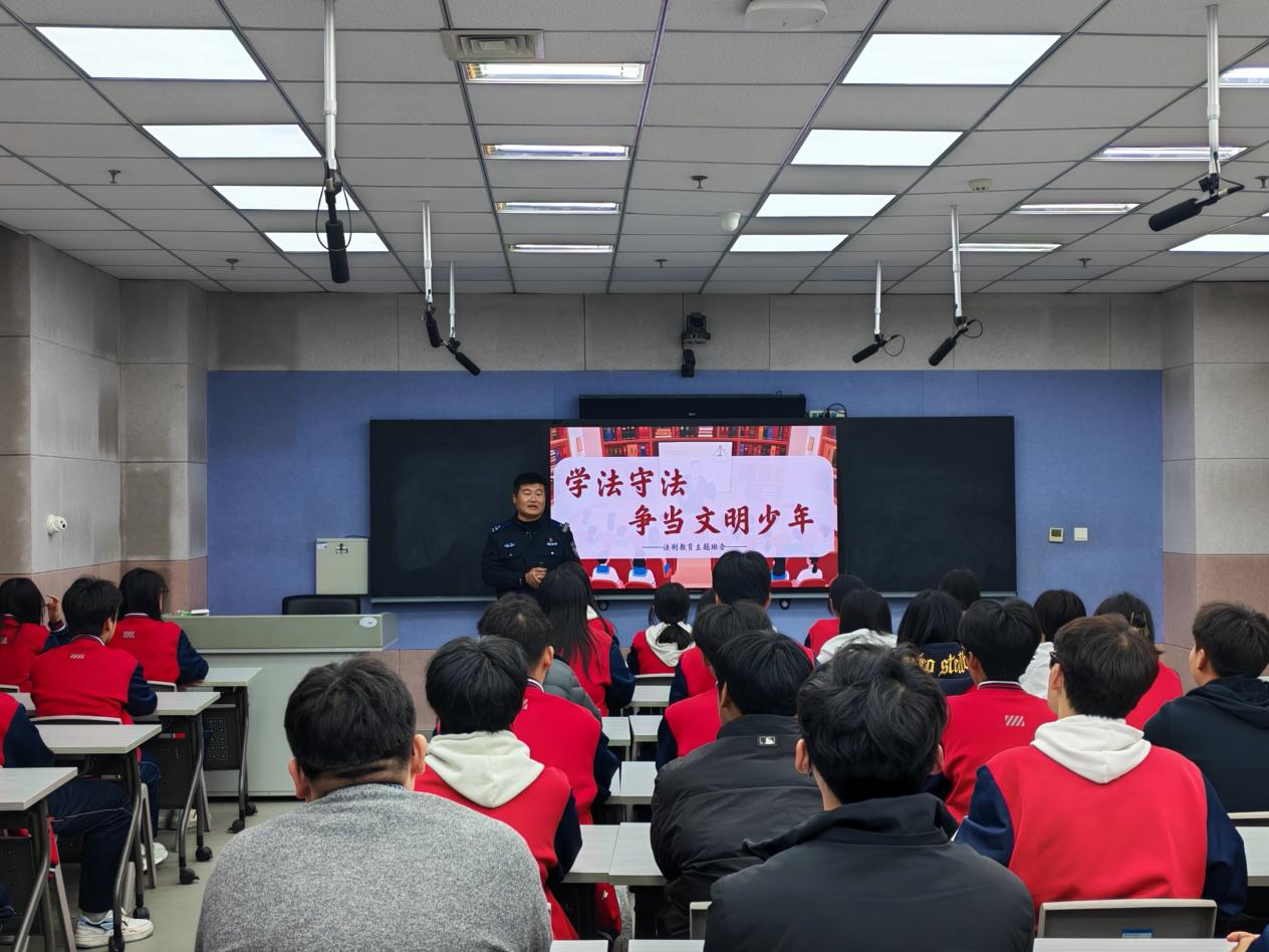 为增强学生法治观念,筑牢校园安全防线,2026年3月23日晚,临沂市高级财经学校特邀大学派出所民警杜以升走进校园,以“学法守法 争当文明少年”为主题,面向全体学生开展“法治第一课”专题宣讲活动。
