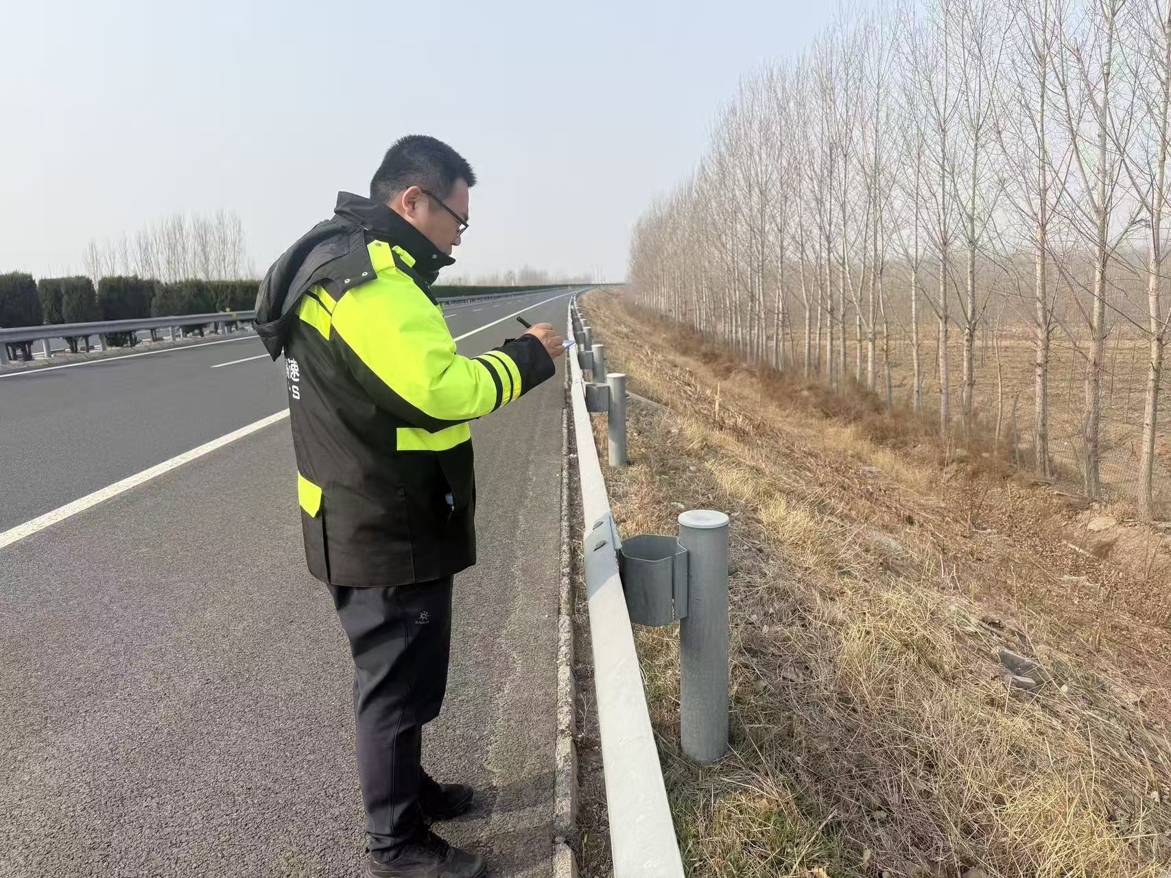 调查过程中,山东高速东营发展公司养护大队严格落实责任到人的要求,实行“分段分幅、专人负责”机制,徒步人员严格遵循养护作业规程,仔细排查路面裂缝、坑槽、路基水毁等常见病害,核查轮廓标、百米牌、指示牌的完好情况,并详细记录病害位置、类型及严重程度,建立病害处置台账,为后续科学制定养护方案、精准开展病害处置提供了详实数据支撑。