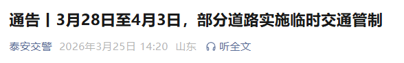 注意!3月28日至4月3日,泰安部分路段实施临时交通管制