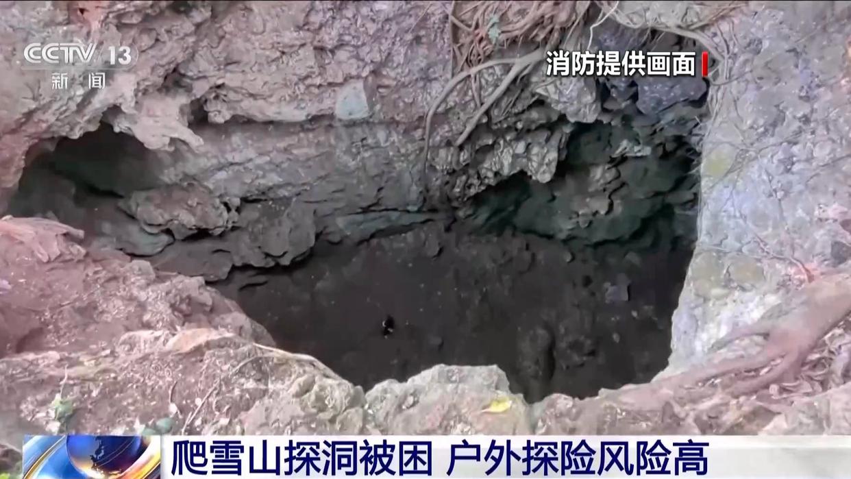 爬雪山探洞被困