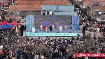 在五莲县大旺村,300余亩樱桃花竞相绽放。今年,当地在赏花基础上,举办了歌舞表演、非遗市集、农特产品展销等活动,为游客带来新体验。