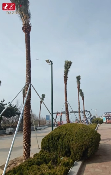 针对烟台冬天的严寒天气,景区会采取一定的防寒越冬措施,确保中东海枣能在烟台顺利成活。