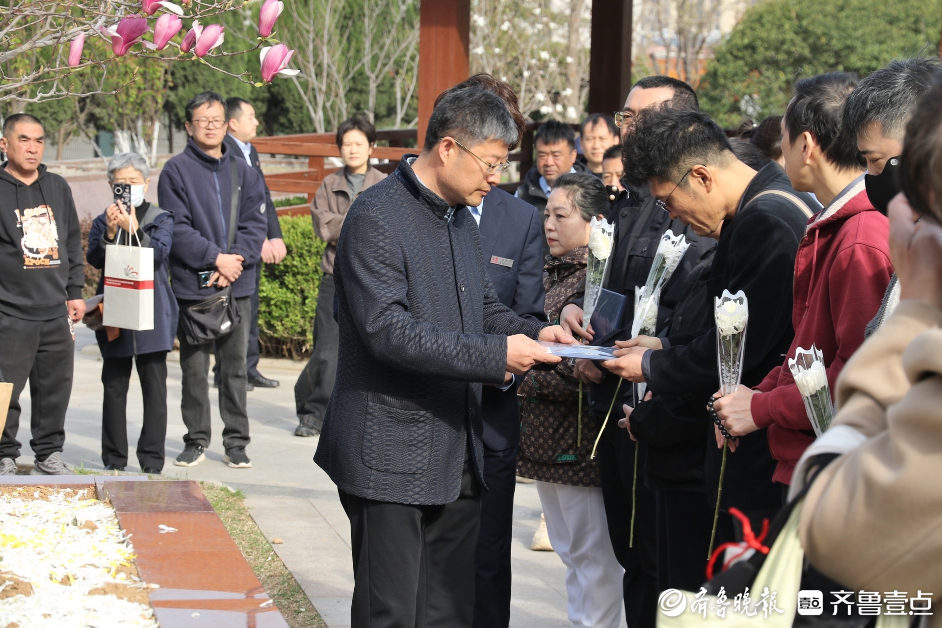 仪式现场,济南市民政局社会事务处二级调研员杨国安、济南市殡仪馆馆长李琳共同为逝者家属颁发生态葬证书,倡导节地生态安葬理念,让逝者长眠繁花沃土之中,真正实现人与自然和谐共生,思念伴花香永续长存。