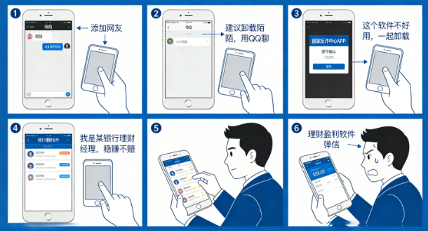原来,他之前从“陌陌”APP上加了个网友,聊了几天后对方提议从QQ上聊天,并且让他将“陌陌”卸载。当了解到他手机上有国家反诈中心APP后,还称这个软件不好用,一番花言巧语诱导他一并卸载了。