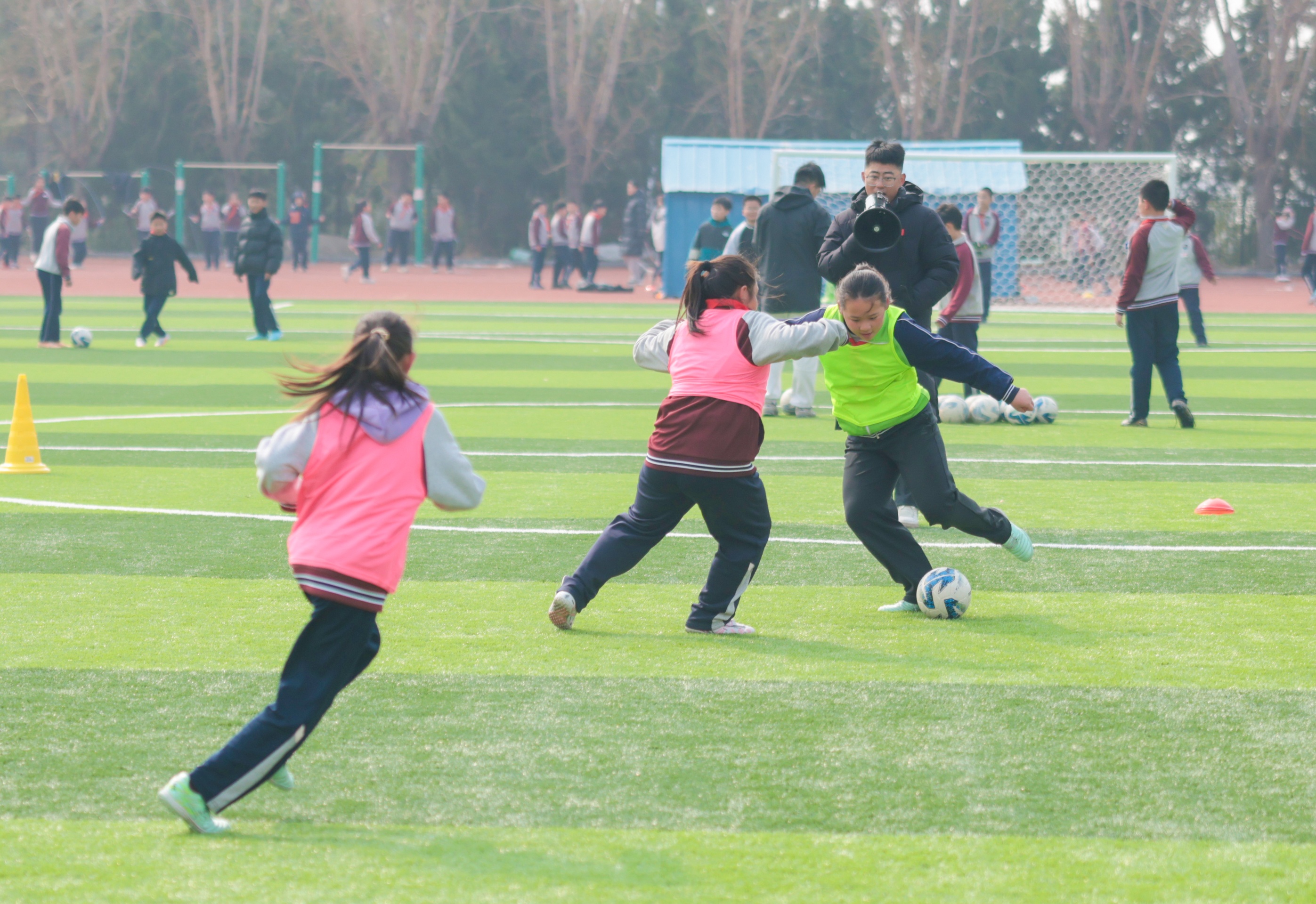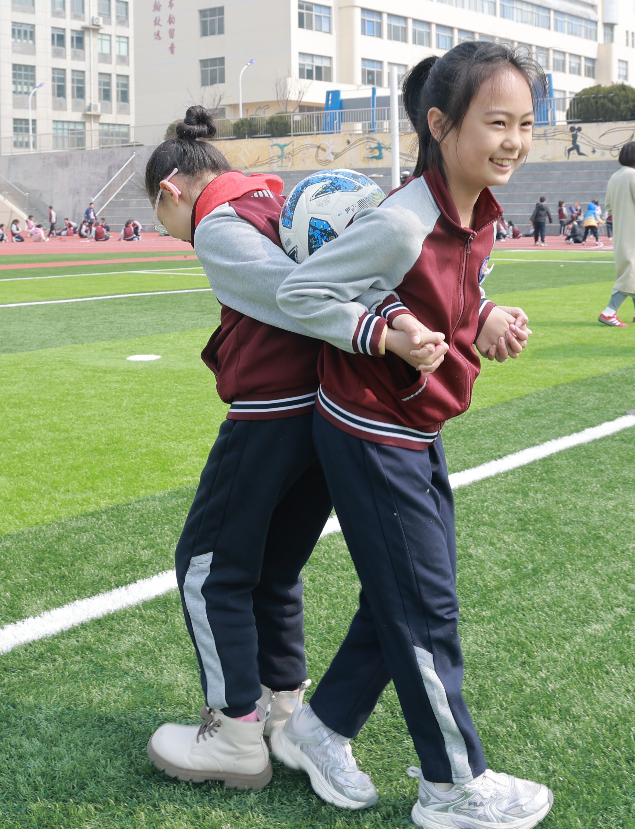 3月24日,荣成市府新小学的操场上,学生们同步开展体育锻炼与心理教育活动,在运动中强健体魄,在疏导中滋养心灵。