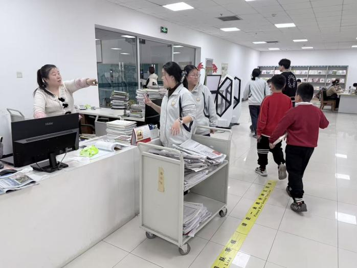 在工作人员指导下,同学们系统学习了图书整理、分类上架、书籍搬运等流程,并迅速投入实践。