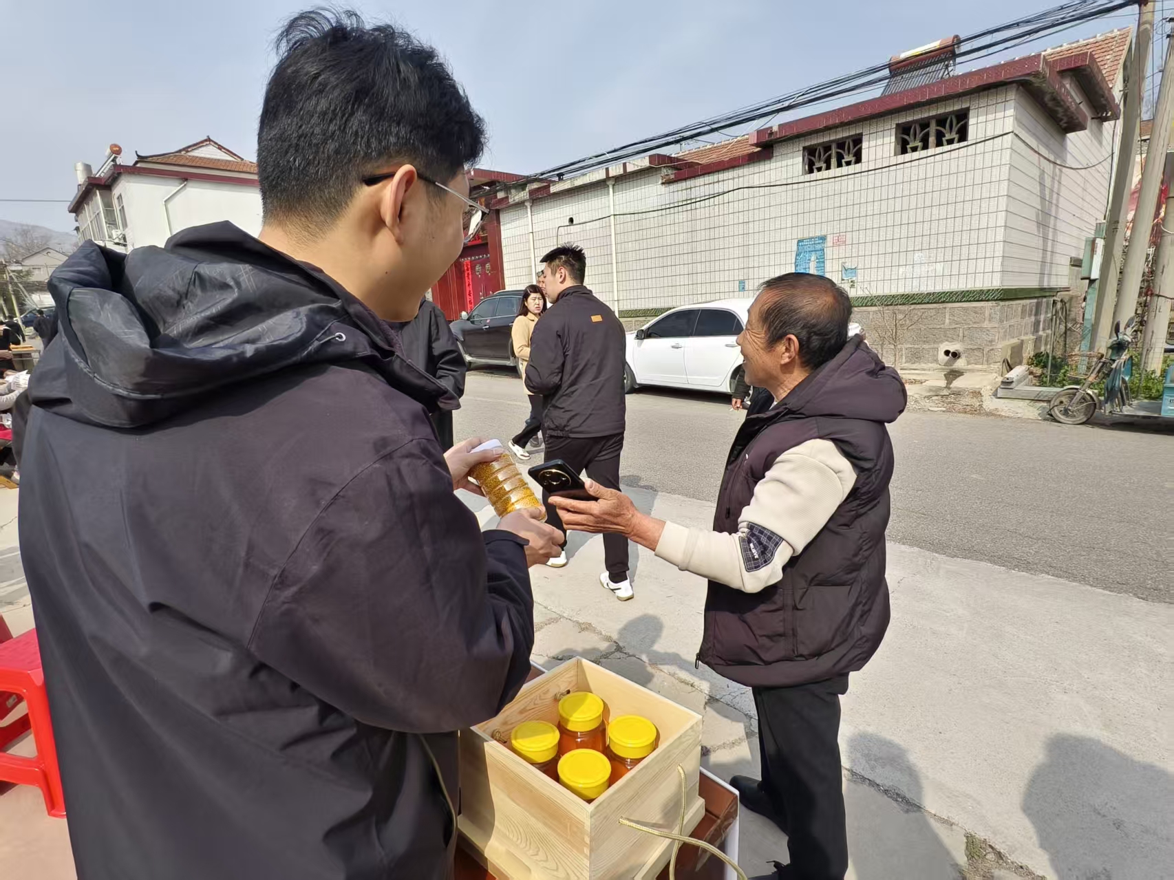 驻村选调生作为扎根基层、服务群众的青春力量,是丁家庄村文旅联动增收的重要助力。魏桥镇选调生何晋昊、张庆联合明集镇选调生孟瑞祥化身推介员向游客详细介绍产品特点、功效优势,以专业的讲解、真诚的服务吸引大批游客驻足品鉴排队订购。“这款蜂王浆纯天然无公害,能有效守护心血管健康,还能辅助调理糖尿病,大家可以尝尝!”选调生何晋昊笑着说到。一句句朴实真诚的推介,一声声耐心细致的解答,不仅让更多人熟知丁家庄村的特色农品,更有效带动了产品销量。