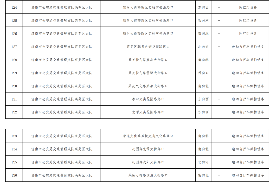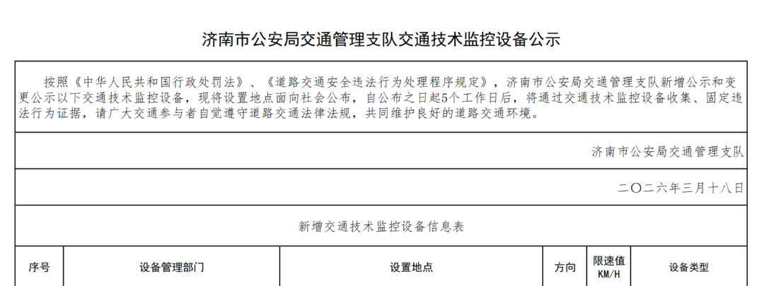 本次新增和变更的交通技术监控设备覆盖莱芜区多个路段,具体点位以济南市公安局交通管理支队官方公示为准。交警部门提醒广大驾驶员,行车途中务必遵守交通法规,安全驾驶,切勿心存侥幸。
