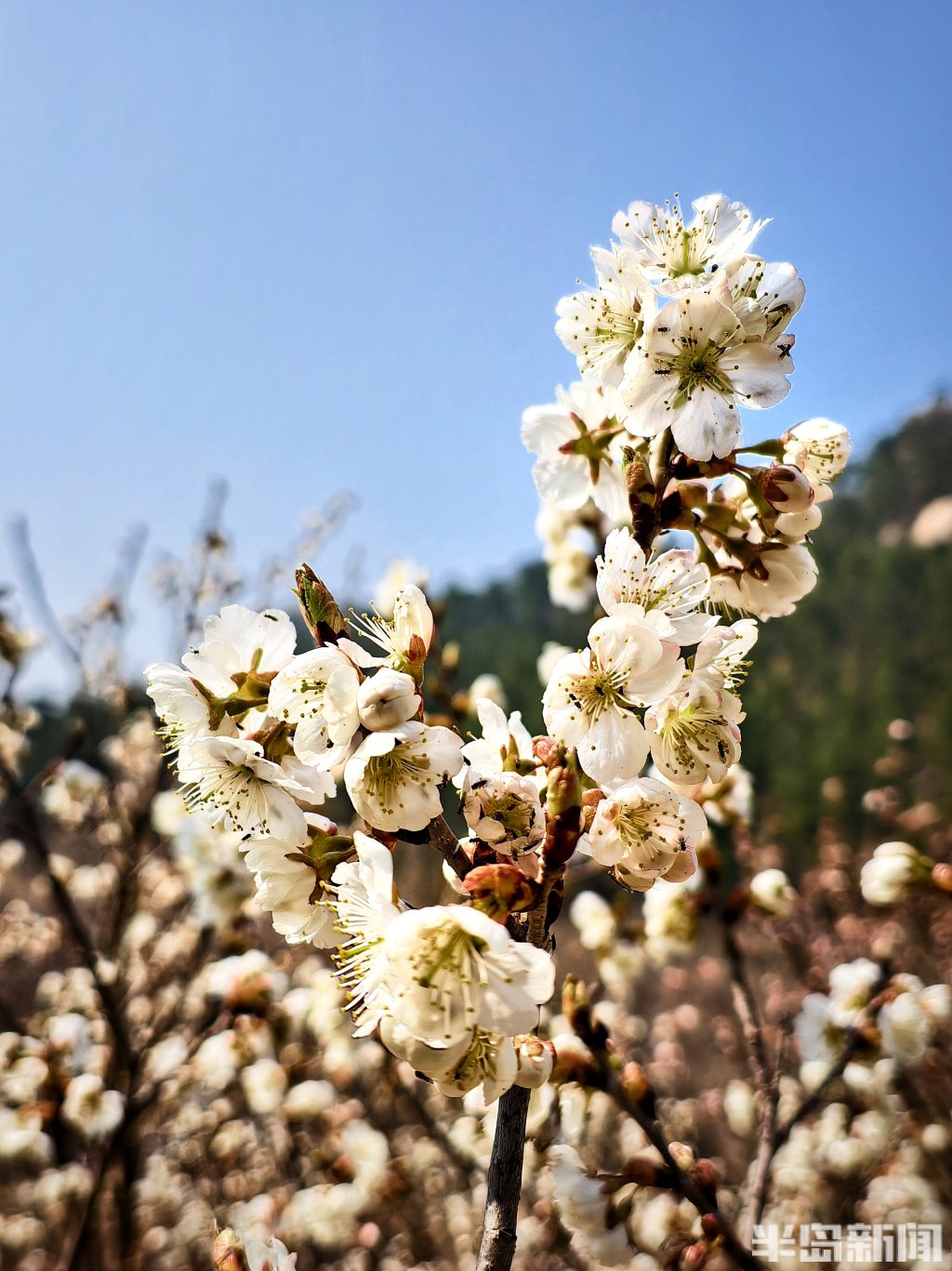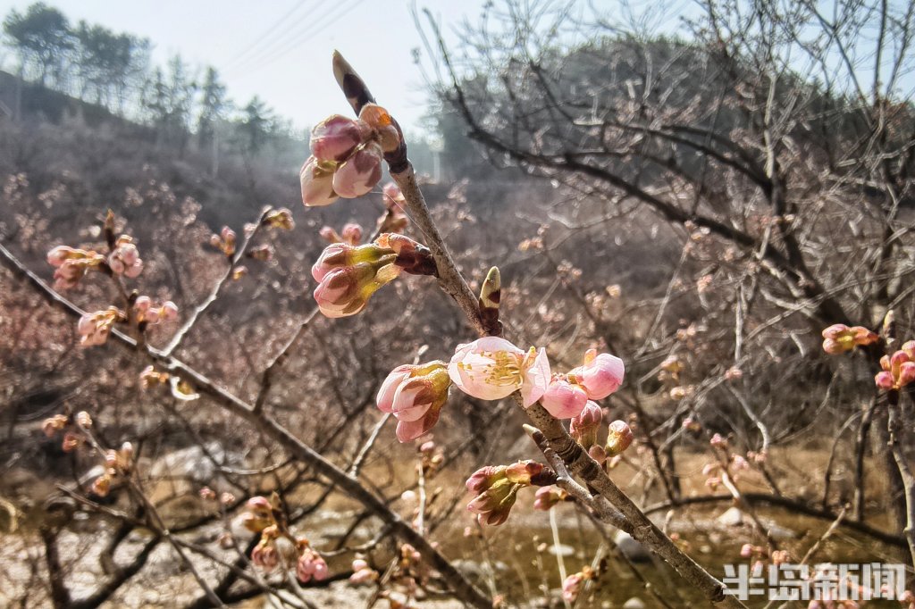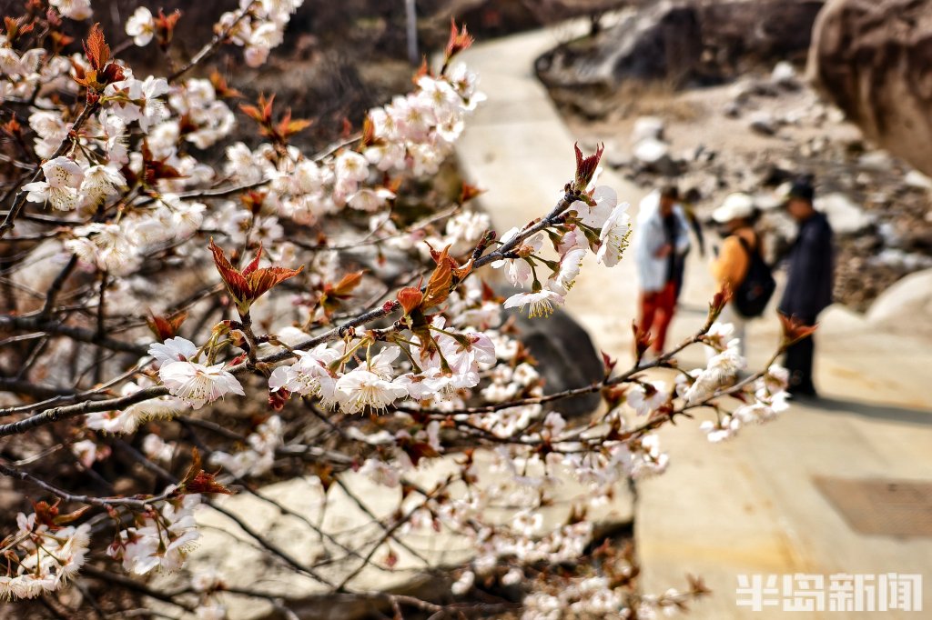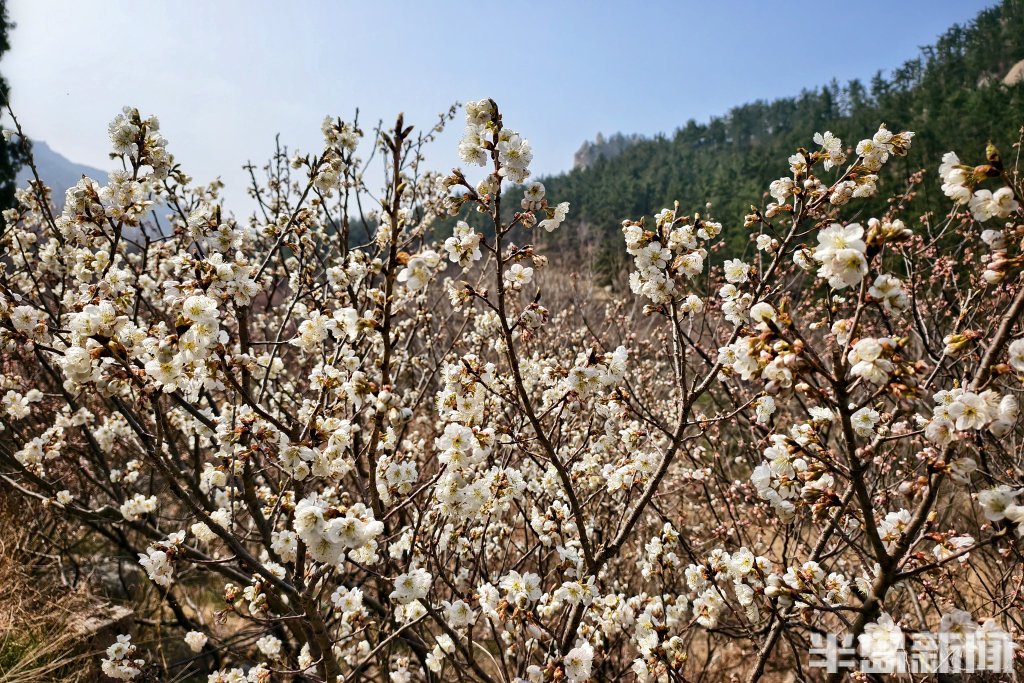 3月26日,青岛崂山九水游览区内,部分区域的樱桃花竞相绽放,如云似雪,将青山绿水点缀得格外灵动。沿景区道路前行,两侧山坡上,粉白色的花团层层叠叠,不仅开在山坡,也开在溪畔、石阶旁,处处皆景,步步入画,与山涧溪流、嶙峋怪石相映成趣,构成一幅幅天然的春日画卷。由于山区气温环境影响,崂山九水景区仍有部分区域的樱桃花含苞待放,花期稍晚。(半岛全媒体记者吴璟)