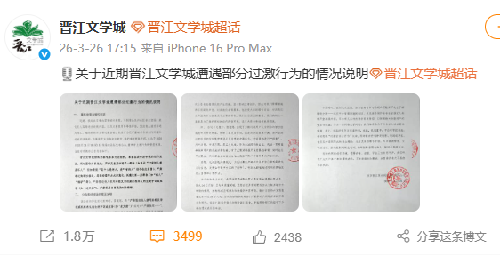3月26日,晋江文学城一则“遭遇部分过激行为”的情况说明,未能平息舆论风暴,反而让这场因“老天奶”一词引发的争议愈演愈烈。