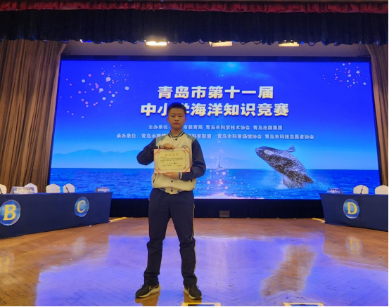 在学业之外,田牧可以“勤学善思笃行”为座右铭,在编程、海洋、国学等领域深耕不辍:斩获世界机器人大会青少年赛事华东赛区一等奖、全国青少年信息学奥赛入门级省一等奖;摘得青岛市第十一届中小学海洋知识竞赛初中组一等奖;获青岛市“国学小名士”竞赛全市第四名。同时,他积极参与社会实践,录制联合国“海洋十年”宣传内容、投身社区垃圾分类和青岛地铁志愿服务,在知行合一中诠释新时代少年的责任与担当。