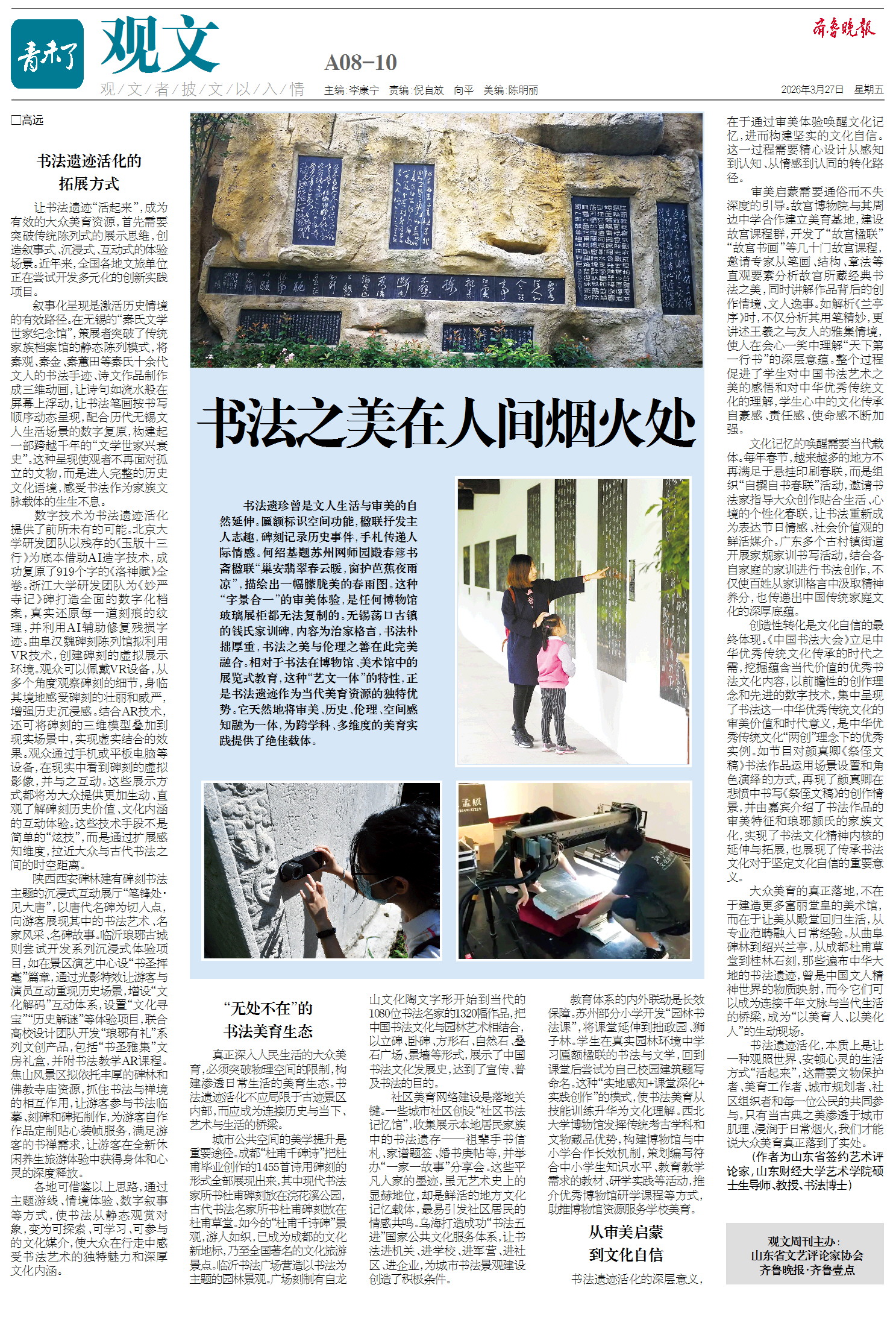 书法遗迹活化,本质上是让一种观照世界、安顿心灵的生活方式“活起来”,这需要文物保护者、美育工作者、城市规划者、社区组织者和每一位公民的共同参与。只有当古典之美渗透于城市肌理、浸润于日常烟火,我们才能说大众美育真正落到了实处。
