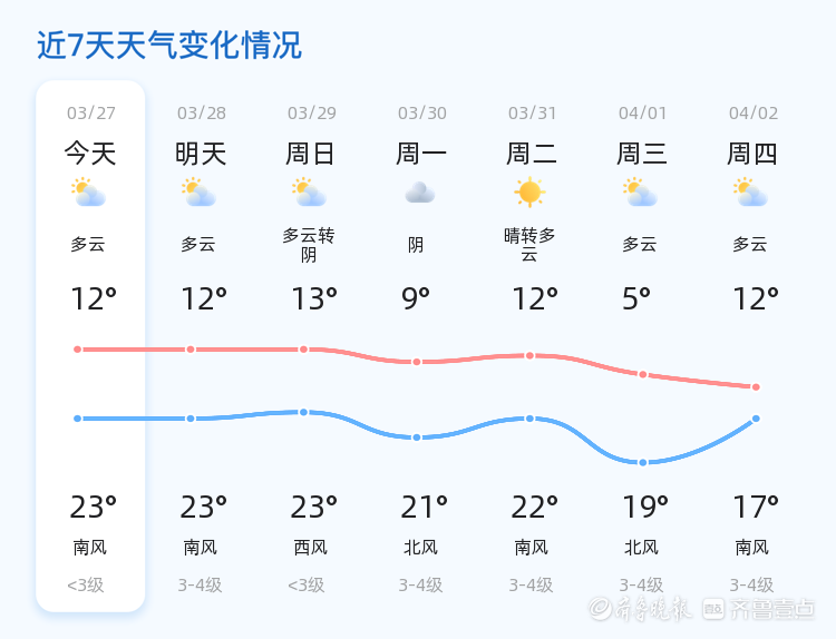 泰安迎来多云天气,未来三天气温波动需注意AI写稿 2026-03-27 06:33:19温馨提示近期泰安市天气多变,气温波动较大,市民需注意保暖,避免感冒。特别是3月30日北风较强,建议减少高空作业和户外活动,确保安全。此外,未来三天内空气质量总体良好,适合外出活动。责任编辑:AI小壹