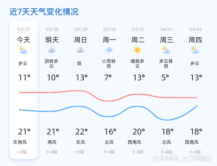 今天是3月27日,星期五,农历二月初九。菏泽市今日天气以多云为主,气温适中,最高气温21℃,最低气温11℃,东南风1级,空气湿度较高,为82%,PM2.5指数为115。各区天气情况基本一致,均为多云,风力较小,适合市民外出活动。市民朋友们可以抓住今天的好天气,安排户外活动或出行计划。明天的天气将有所变化,预计为阴转多云,气温与今日持平,最高气温21℃,最低气温10℃。风力有所增强,南风3-4级。市民朋友们在出行时需注意防范大风带来的不便,尽量避免在广告牌或大树下逗留。未来三天,菏泽市天气将呈现阴雨交替的趋势。周六(3月29日)以阴天为主,气温略有上升,最高气温22℃,最低气温13℃;周日(3月30日)将有小雨转阴的天气,气温下降,最高气温16℃,最低气温7℃,风力较大,北风3-4级;下周一(3月31日)天气晴转多云,气温回升,最高气温20℃,最低气温13℃。市民朋友们需根据天气变化及时增减衣物,特别是周六的阴雨天气可能对交通出行带来一定影响,建议市民提前规划好行程,携带雨具,注意交通安全。温馨提示