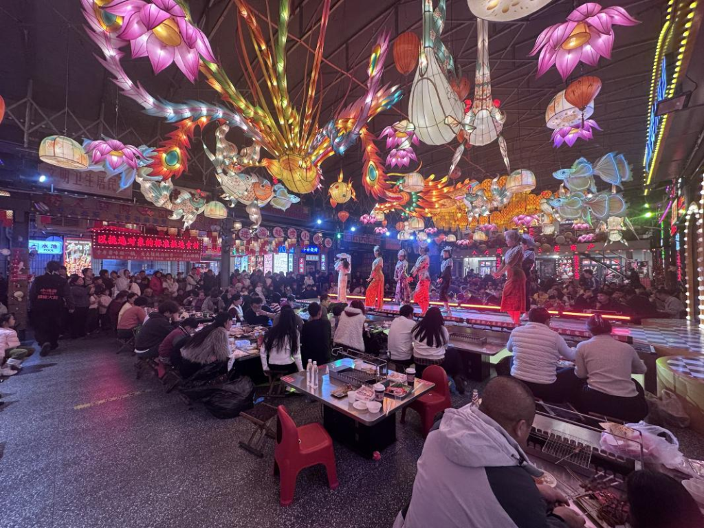 街边的烧烤店也逐渐开门迎客,头部品牌与新式体验店晚间上座率稳定,更多社区小店则回归本地人小聚的朴素场景——几盏灯、几桌客,静静守护着城市日常。