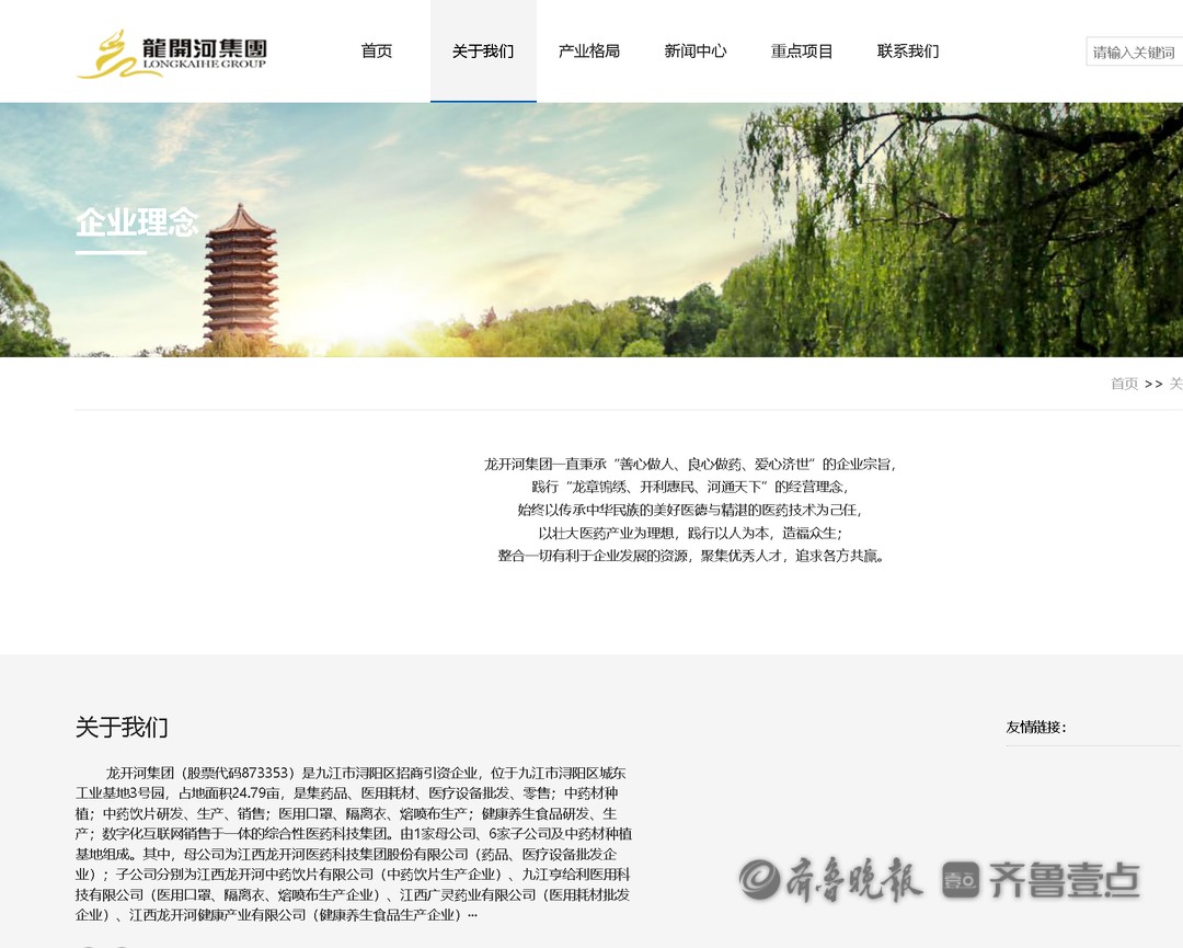 龙开河集团(股票代码873353)是九江市浔阳区招商引资企业,位于九江市浔阳区城东工业基地3号园,占地面积24.79亩,是集药品、医用耗材、医疗设备批发、零售;中药材种植;中药饮片研发、生产、销售;医用口罩、隔离衣、熔喷布生产;健康养生食品研发、生产;数字化互联网销售于一体的综合性医药科技集团。由1家母公司、6家子公司及中药材种植基地组成。