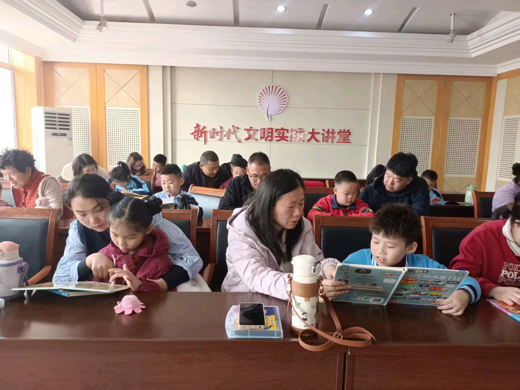 亲子共读环节,时光格外温柔。家长们轻拥孩子,或揽于怀中,或并肩而坐,指尖捻过书页,沙沙声响里满是温情与陪伴。年轻妈妈王娜感慨:“平时下班总想着休息,今天才发现,放下手机陪孩子读书,远比刷手机更有幸福感,也更能体会到家庭的温暖。”阅读的余韵在画笔下延续,七岁的浩浩铺开画纸,用五彩画笔勾勒出一本巨大的书,书里伸出的无数只手紧紧牵着爸爸妈妈。“书是魔法,能把大家都拉在一起。”孩子仰起头,语气认真又坚定。