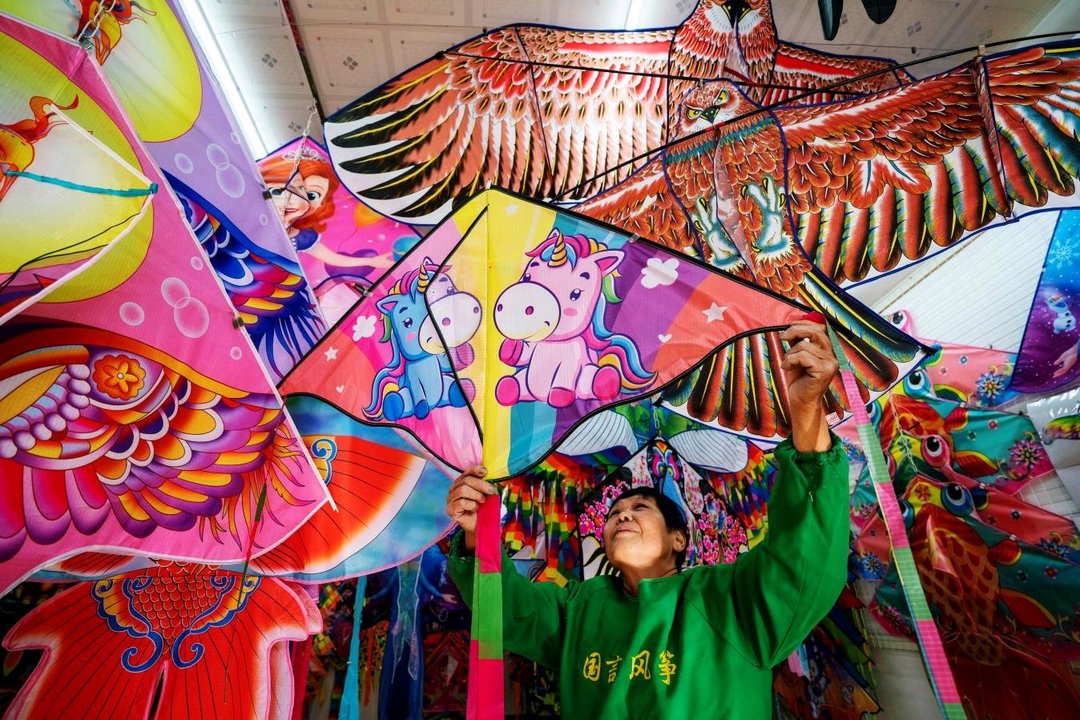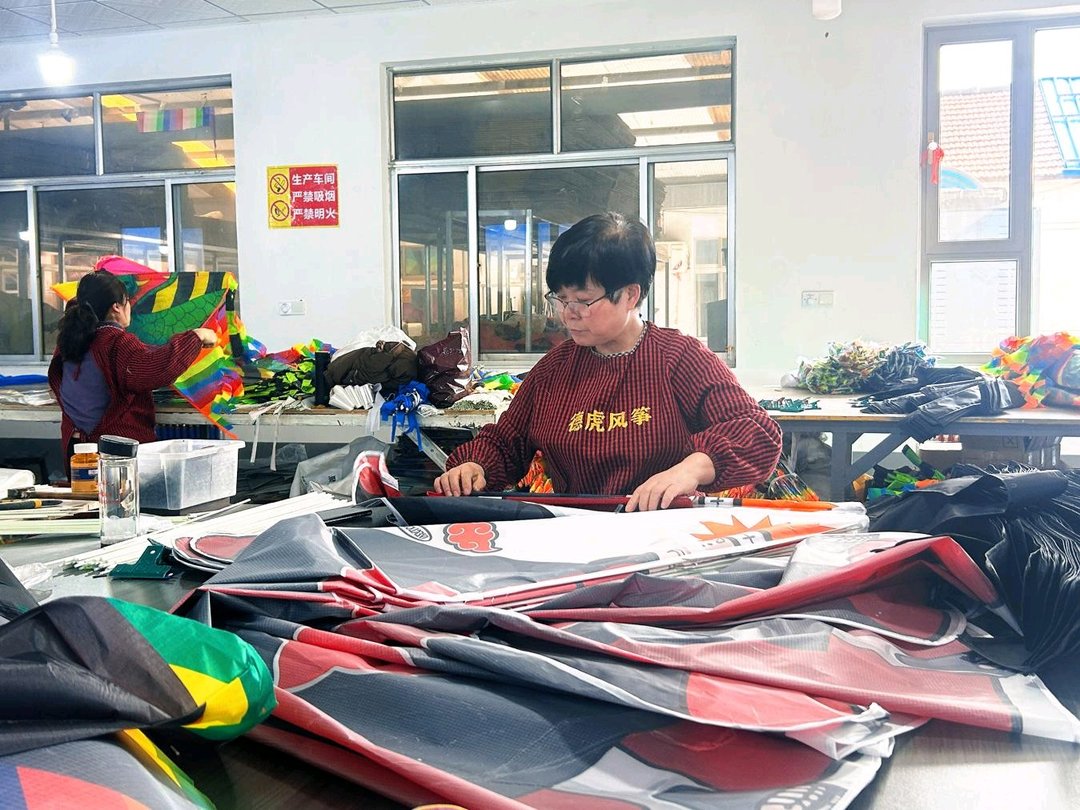 “风筝经济”不仅壮大了产业,更带动村民实现家门口就业、稳稳增收。今年59岁的张吉霞是当地一家风筝厂的裁剪工,面对记者,她笑着说:“在家门口上班,每月能挣3500多元,既能照顾家庭,又能有稳定收入,特别知足。”