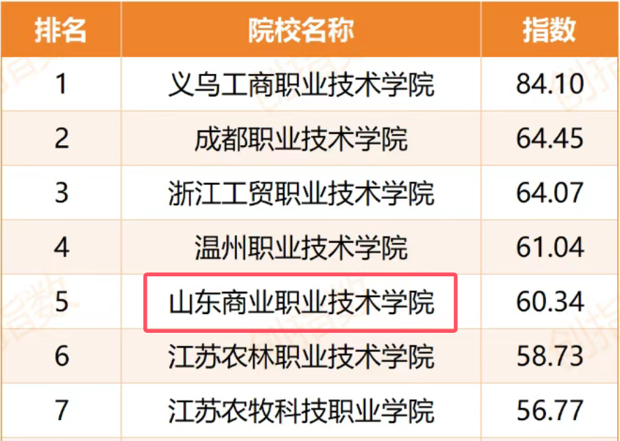 近日,“创指数”正式发布2025年中国高职(专科)院校创新创业教育指数排名。山东商业职业技术学院在全国1554所参评高职(专科)院校中脱颖而出,位列全国第五、山东省第一。学校已连续四年位列该榜单全国前十名、山东省第一名。