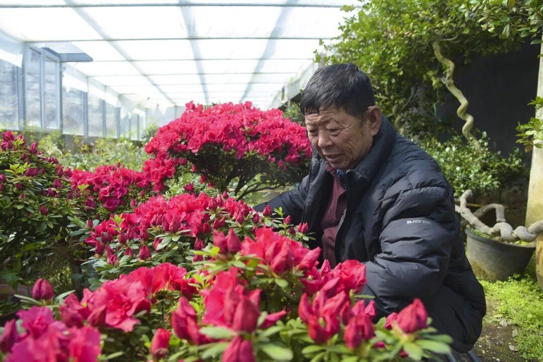 走进北车脚河村的花农姜焕春的花卉大棚,满园春色关不住。从几千元到十几万元价格不等的名贵茶花,到经过精心造型设计的罗汉松盆景,这里不仅是花木的海洋,更是艺术创作的天地。