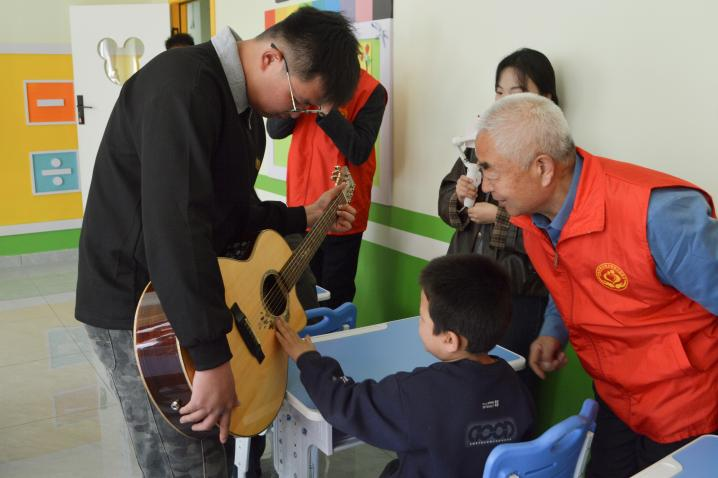 在趣味互动环节,志愿者们与孩子们同唱歌曲、共做手工,用音乐和创作架起沟通的桥梁,现场笑声不断、温情涌动。结对志愿者为孩子们精心准备了饼干、坚果等爱心物资,将满满的关爱化作实实在在的温暖,送达每一位特殊儿童手中。