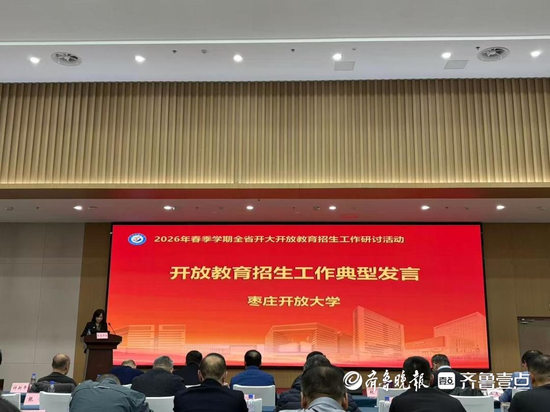 近日,2026年春季学期全省开放教育招生工作研讨活动在济南顺利召开。枣庄开放大学在会上作典型发言。