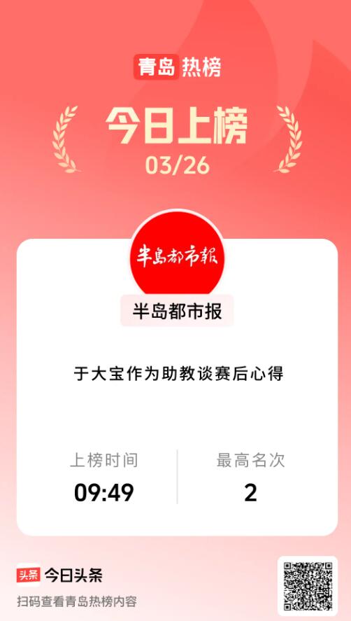 登上青岛热榜,最高名次为第二名