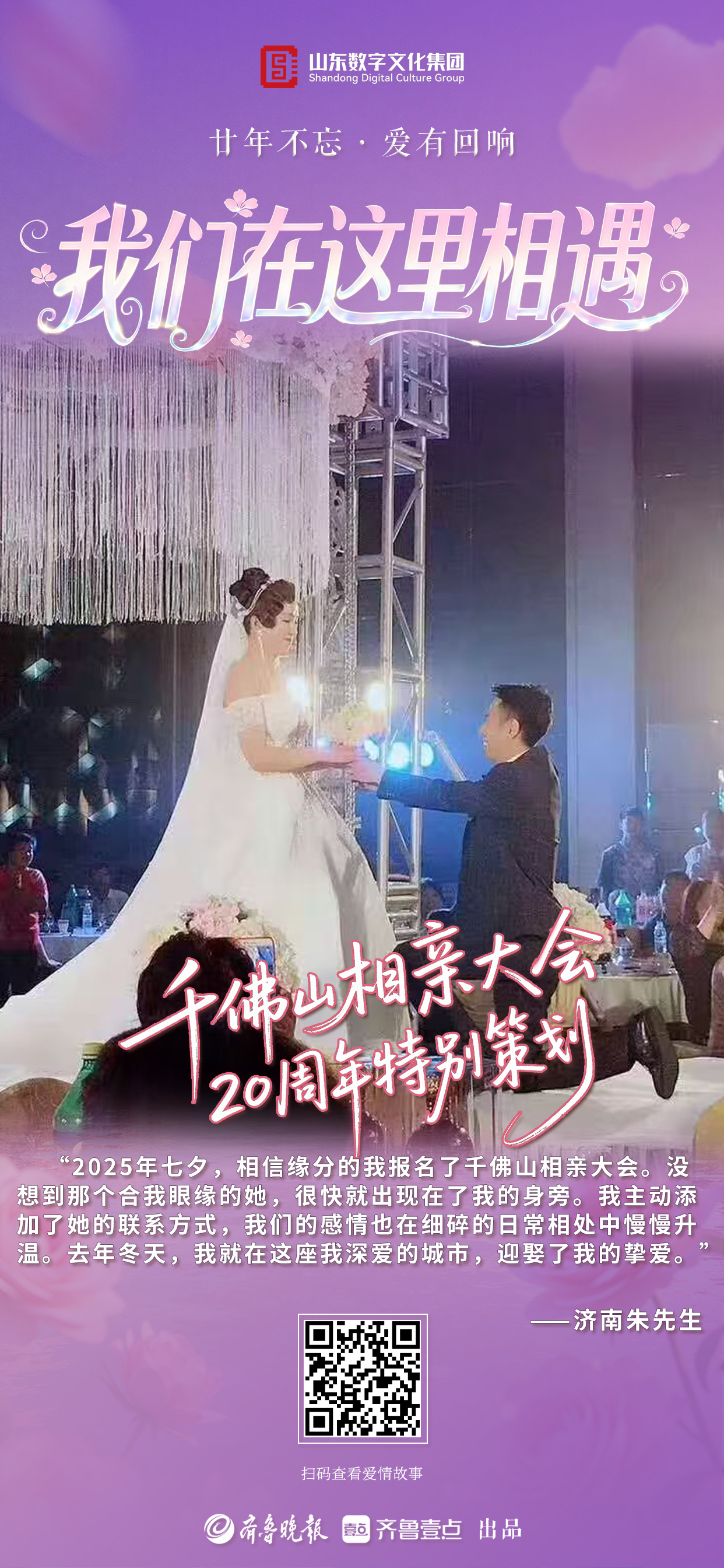 2025年七夕,朱先生和他的爱人在千佛山相亲大会相遇,从初见倾心到笃定终身,如今已经携手步入婚姻,继续书写他们的爱情故事。
