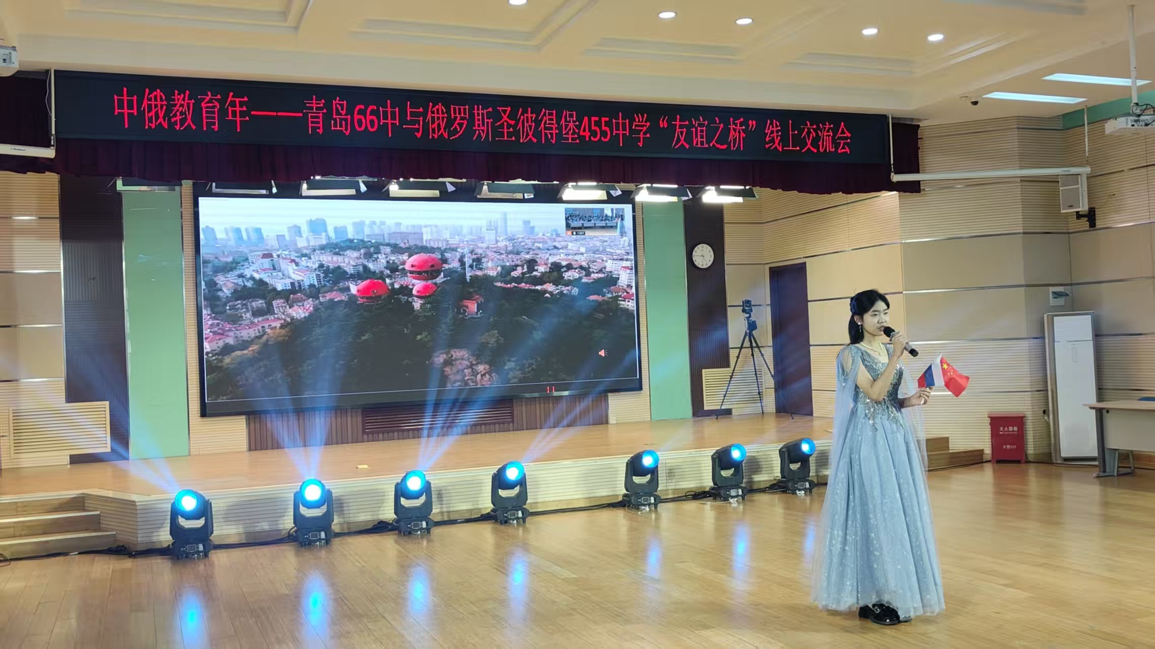 青岛六十六中与圣彼得堡455中学云端相聚,共赴跨国教育文化之约